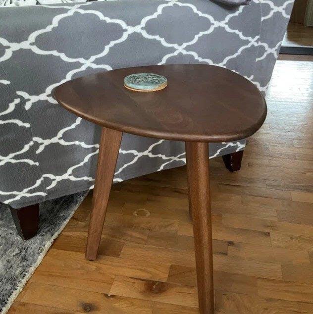 Handcrafted of solid mango wood, this side table celebrates nature’s beauty in a mid-century modern silhouette. Its natural variations in wood grains make a real statement- simply add your favourite books and lamps into the mix, and you will create a focal point in any room. With rounded edges, tapered legs, and a natural finish, it has an unmistakable Scandinavian opulence that we are always down for. Good-looking and useful, your guests might just want to steal the look!