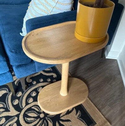 A Scandinavian stunner. Crafted from solid wood, this end table features oblong top and base conjoined via a rounded pedestal leg. The tray top is bordered with a raised lip around the edge to keep things in place. Whether you’re sipping coffee or hosting happy hour, this one will be your sturdy side kick!