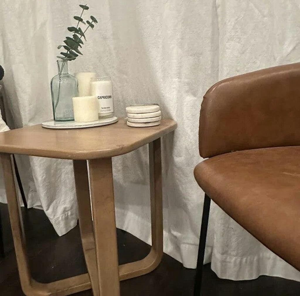 With clean lines & compact form, this side table exudes simplicity! Crafted using solid wood, it features a rounded square top with soft edges for a functional design. Want more? The U-shaped legs intersect together to create a visual intrigue in your space. Easy to assemble, you can style this statement piece in your living room, bedroom, or entryway!