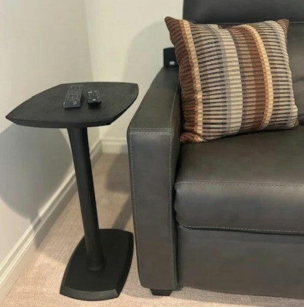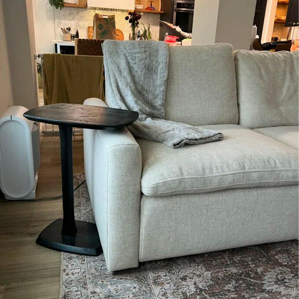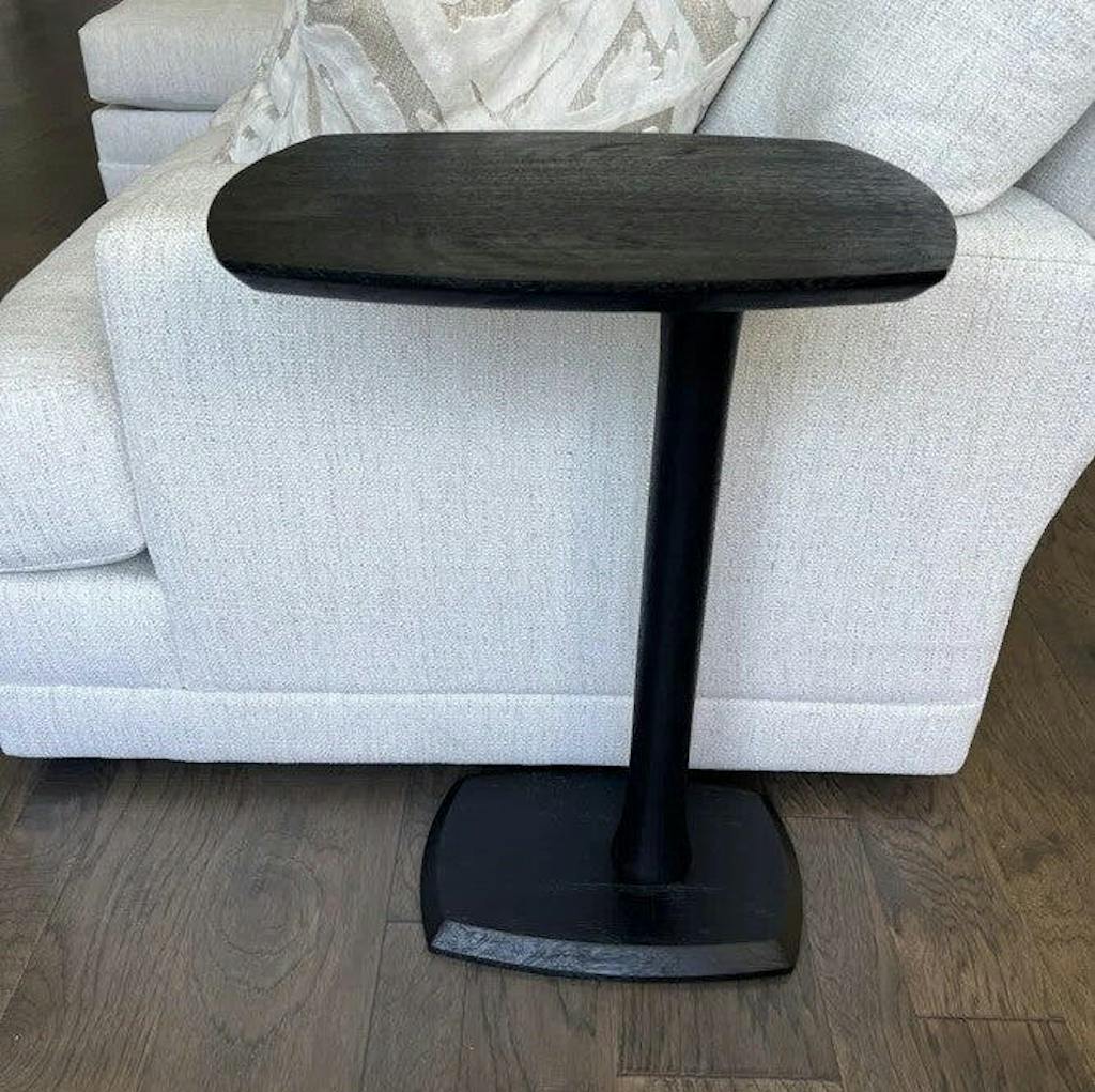 Slide 'n' Hide. Solid wood all over, this end table comes with boat-shaped parallel planes that have chamfered edges for a Scandinavian look! Space-saving c-type design paired with sturdy pedestal leg lets you effortlessly slide it under a sofa, couch, or bed. Your snacks, beverages, remotes, or favorite books are at a quick reach.