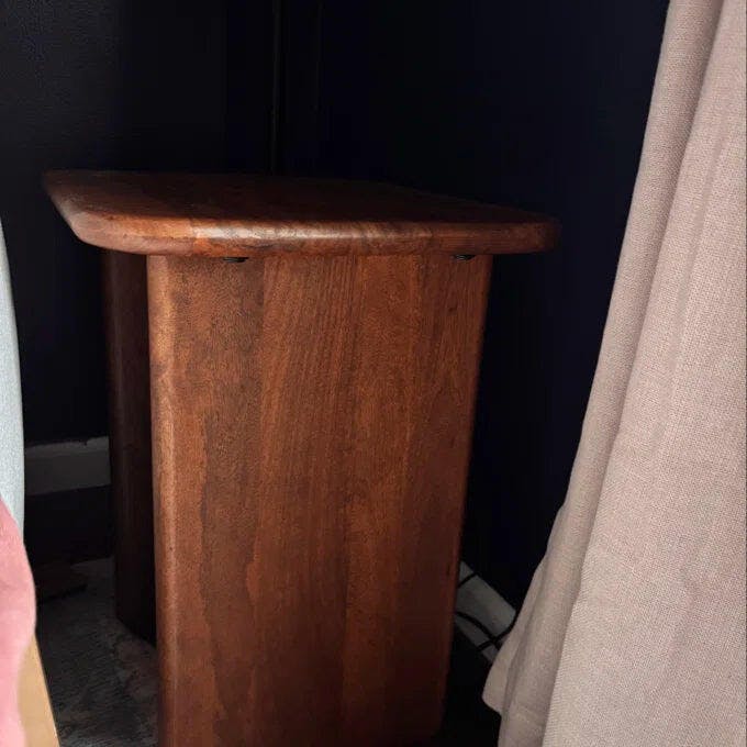 Simplicity meets sophistication with this handcrafted end table. Made using solid wood, it features a rectangular top with rounded edges that match the plank legs. Best part? Assembles in just two easy steps and complements everything you need by your side.
