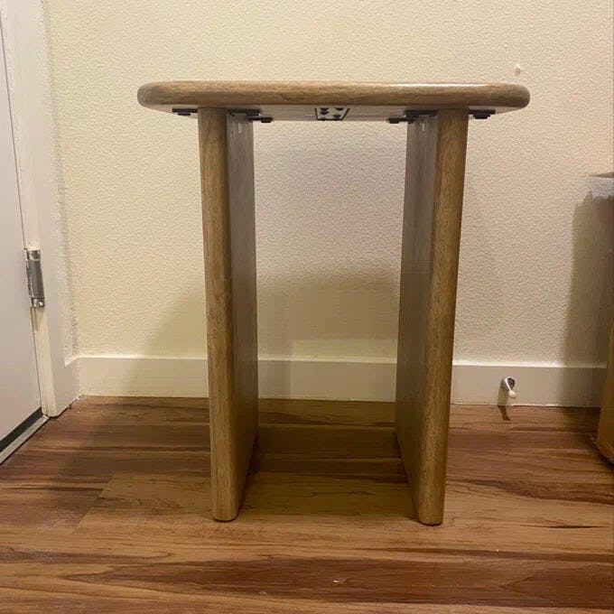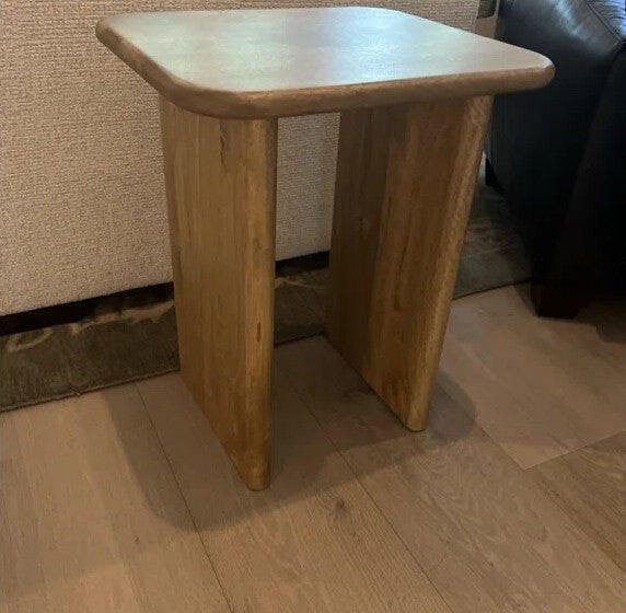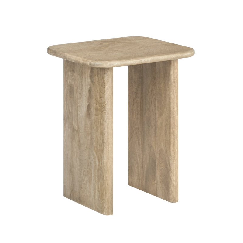 Simplicity meets sophistication with this handcrafted end table. Made using solid wood, it features a rectangular top with rounded edges that match the plank legs. Best part? Assembles in just two easy steps and complements everything you need by your side.
