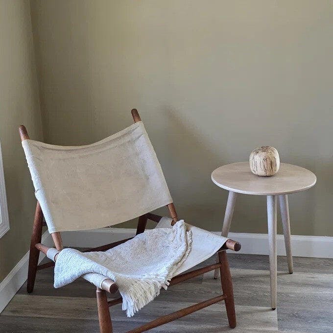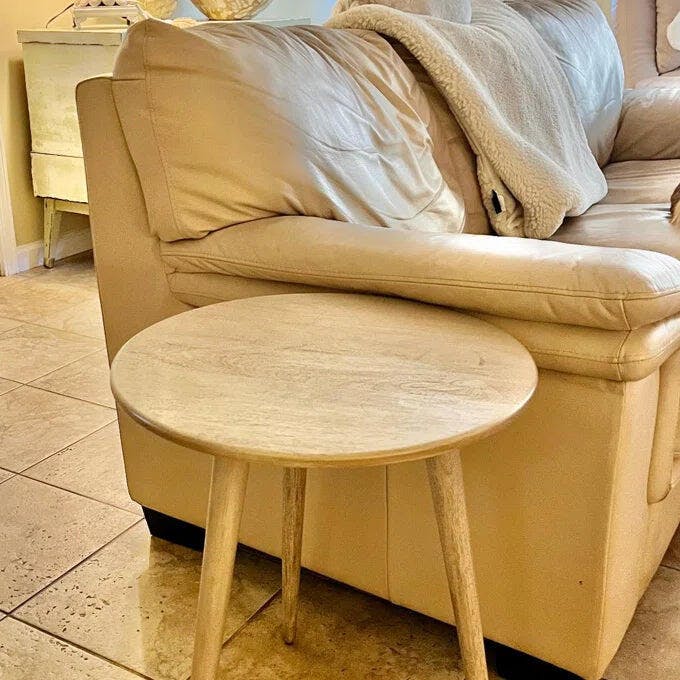 Scandi. Solid wood. Statement. Meet this end table. Kiln-dried wood all over, the natural variations of the grains give it a rich character. The rounded surface introduces a soothing flow into your space, set on slender tripod legs that taper near the foot – good-looking and functional. It’s time to add a perfect landing spot for your accent lighting, magazines, or coffee.