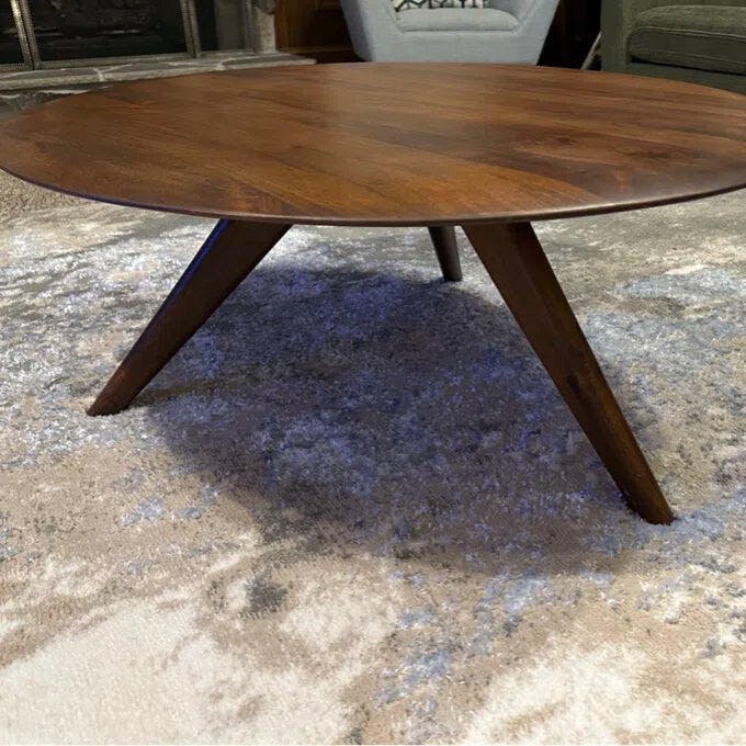 Designed in-house and handcrafted by skilled artisans, this round coffee table features a three-legged base inspired by the Japanese art of origami. Solid wood all over, its pebble-shaped sleek top offers stability - set down your morning coffee, neatly stack your books, or display your decor items without worrying!