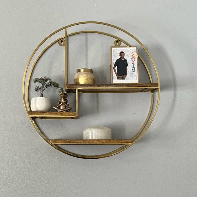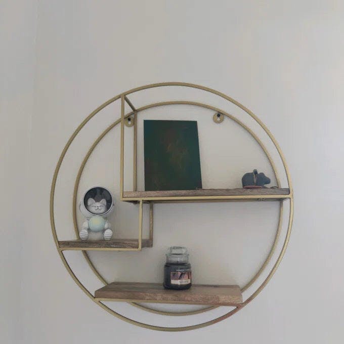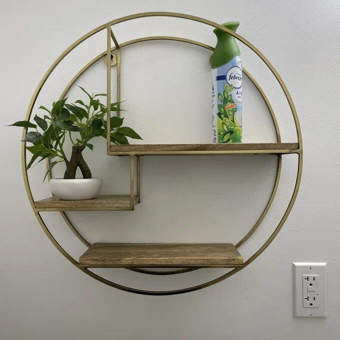 Showcase your décor & other knick-knacks, this shelf is designed to maximize storage space. Handcrafted by skilled artisans, its features double rounded metal frame with three tiers of kiln-dried wood planks in between – industrial chic all over! Hang in your entryway, living room or bedroom, it’s an eye-catching focal point for every space.