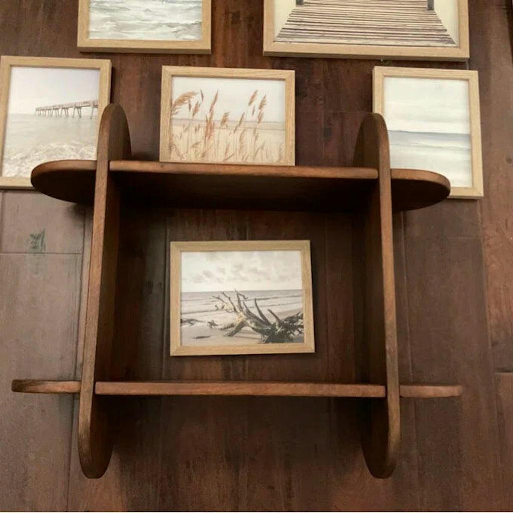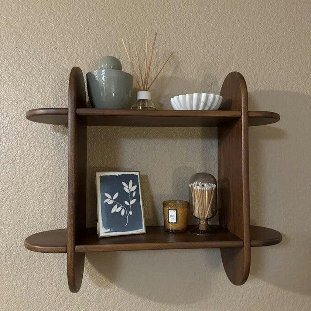 Solid wood all over, this shelf embodies minimal design & superior craftsmanship. Oblong-shaped frames & planks feature semi-grooved slits that interlock with each other, allowing for easy assembly within minutes. Best part? No hardware required. Effortlessly mountable, this space-saving shelf holds every one of your top displays and is even better at showing them off!