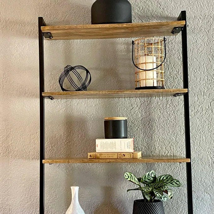 Books and plants to vases- they’ll all look stunning in this shelf.