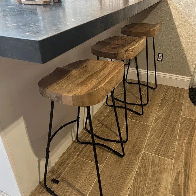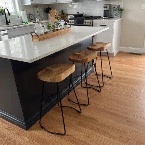 Elevate your kitchen island or breakfast bar with the Wooden Seat Bar Stool. Crafted from premium solid wood with a sleek black metal legs, this 65 cm high stool combines comfort with contemporary design. The natural wooden seat offers a warm, tactile finish while the steel frame ensures sturdy support for everyday use.